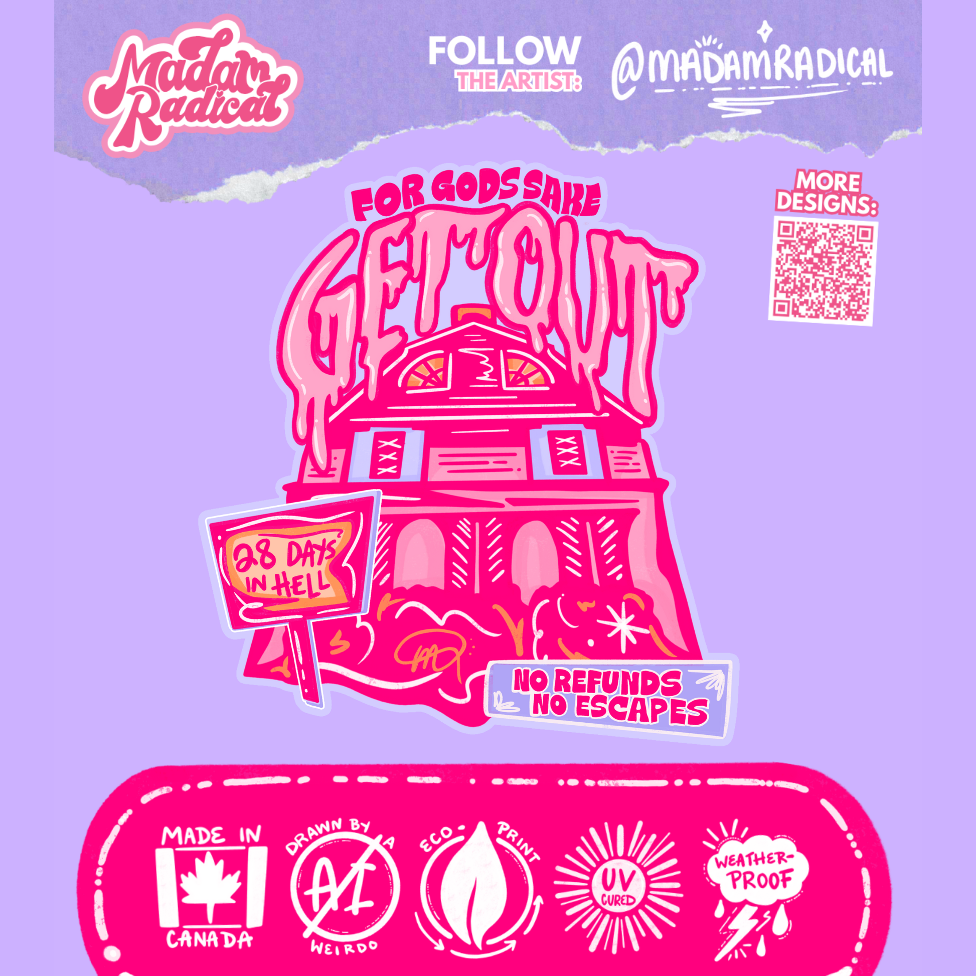 “For God’s Sake, Get Out” Amityville Horror House Design Nostalgia Satire Novelty Waterproof Vinyl Sticker DTF (Copy)